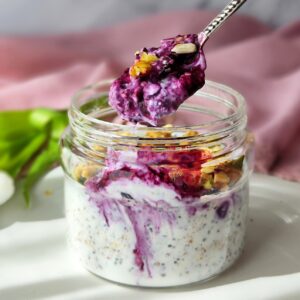 Graikišką jogurtą sumaišome su chia sėklomis ir maltais linų sėmenimis. Per naktį šaldytuve sėklos išbrinks, o jogurtas taps nuostabaus tirštumo pudingu. Tai sutaupys laiko ryte!