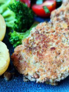 Viską gerai išmaišome. Masė turi būti tokia, kad lengvai formuotųsi kotletai. Jei per skysta – įdedame dar šaukštą avižinių miltų.