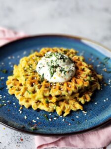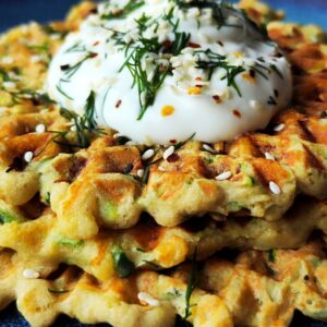 Jei mėgstate sūrius pusryčius ir ieškote būdų, kaip į savo racioną įtraukti daugiau daržovių, šis receptas kaip tik Jums. Tai ne eiliniai vafliai – grikių miltai ir čederio sūris čia sukuria rimtą, sotų pagrindą, o cukinija prideda sultingumo. Šis variantas patiks tiems, kas nemėgsta česnako arba tiesiog jo nenori iš pačio ryto. Žinoma, vafliai puikiai tinka ne tik pusryčiams, jie pakankamai sotūs, o gaivumą suteikia cukinija, žolelės ir citrinos žievelė.