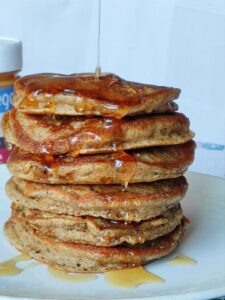 žemės riešutų kremas priduoda natūralų saldumą bei aromatą. Šiuos blynus gardinu klevų sirupu ar uogomis.